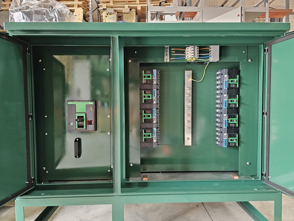We build low voltage distribution cabinets from 100A to 6300A. Off-the-shelf or fully bespoke, with new or refurbished breakers, ATS, G99/G100 relays, and KWh metering. Fast UK delivery.