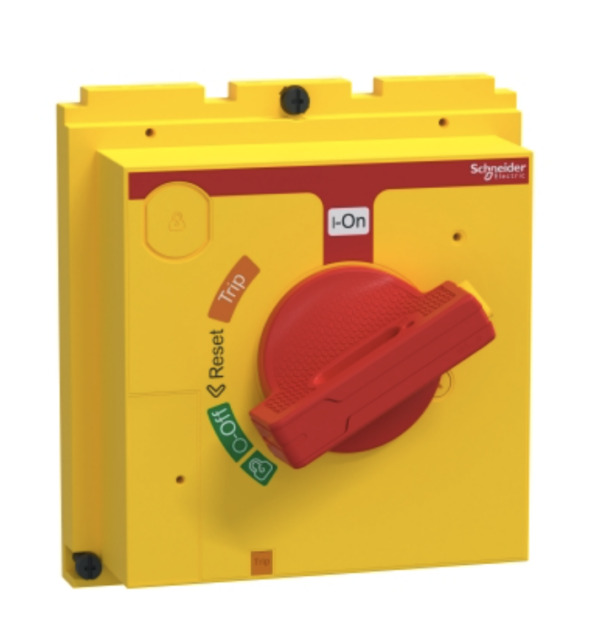 This direct rotary handle is designed for use with ComPacT NSX 400/630 and PowerPact Multistandard L frame devices. Ideal for machine tool control applications, it enables safe isolation while maintaining access to the trip unit settings and the “push to trip” button.