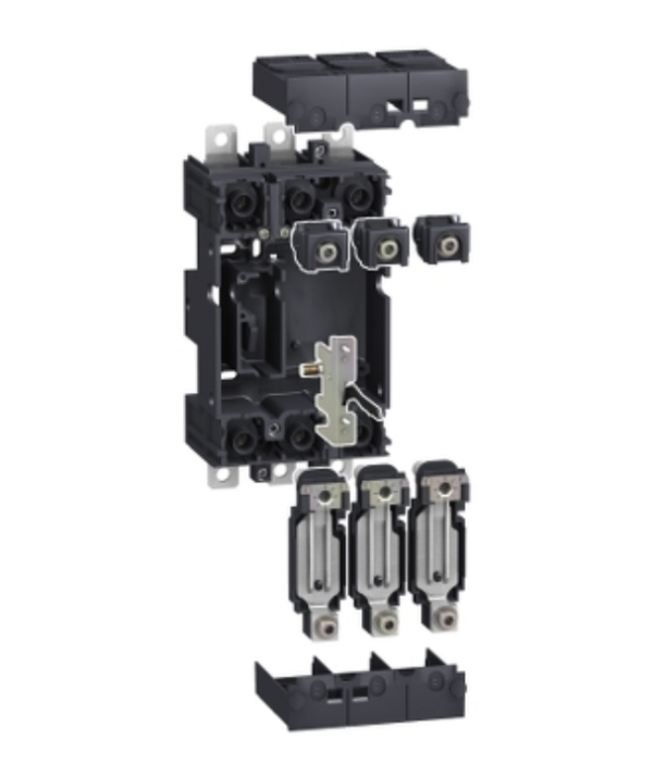 This plug-in kit is specifically designed for use with 3-pole VigiCompact NSX 100/160/250 circuit breakers equipped with a Vigi add-on module. It enables conversion from a fixed to a plug-in configuration, offering greater flexibility and ease of maintenance.
