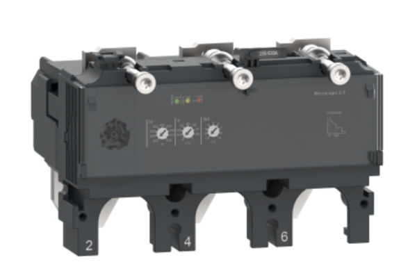 The MicroLogic 2.3 is a 3-pole, 3D electronic trip unit designed for use with Schneider Electric ComPact NSX400 and NSX630 circuit breakers. With a 400 A rating, it is a versatile solution suitable for both standard and specialised power distribution applications.